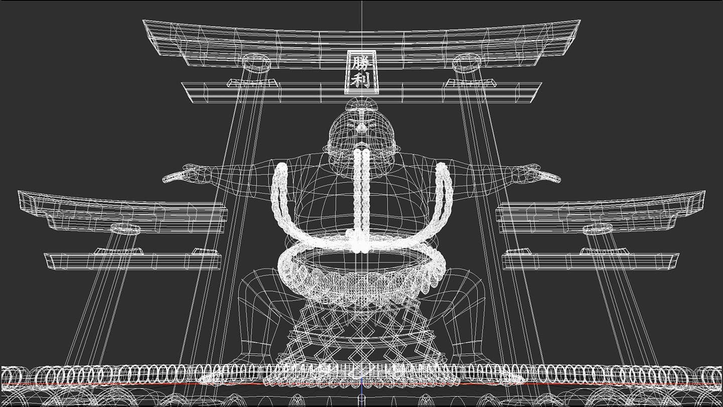 さまざまな種類の制作が可能で、多くの人に興味を持ってもらえて、シンプルな3DCGグラフィックスってなんだろう? と考えた結果、私が導きだしたコンセプトが「日本の伝統や文化を、キャラクターと構造物でポップに表現する!」でした。