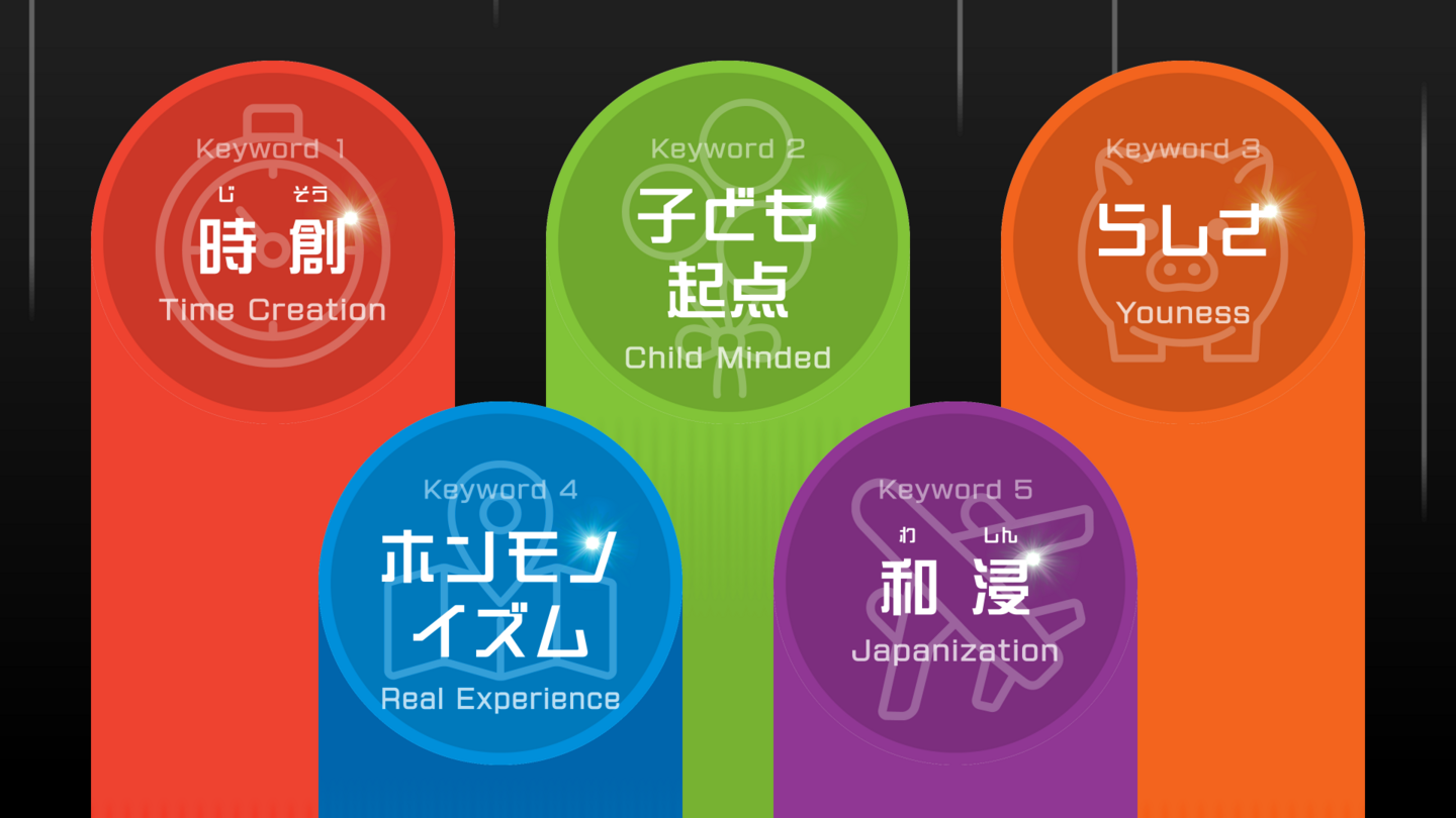 クライアントからの要望は、伊藤忠食品の理念とTramform2025(中期経営計画)を、ビジュアル的に伝えられるようにして、入口で展示したいというものでした。担当者さんのお話によると、理念とTramform2025については、言葉が多くて、ビジュアル的な表現が少ないという課題があるとのこと。伊藤忠食品の理念とTramform2025が、今回のイベントにどのように反映して、さまざまなブースが作られているのか、伝えたいという思いが強いとのことでした。